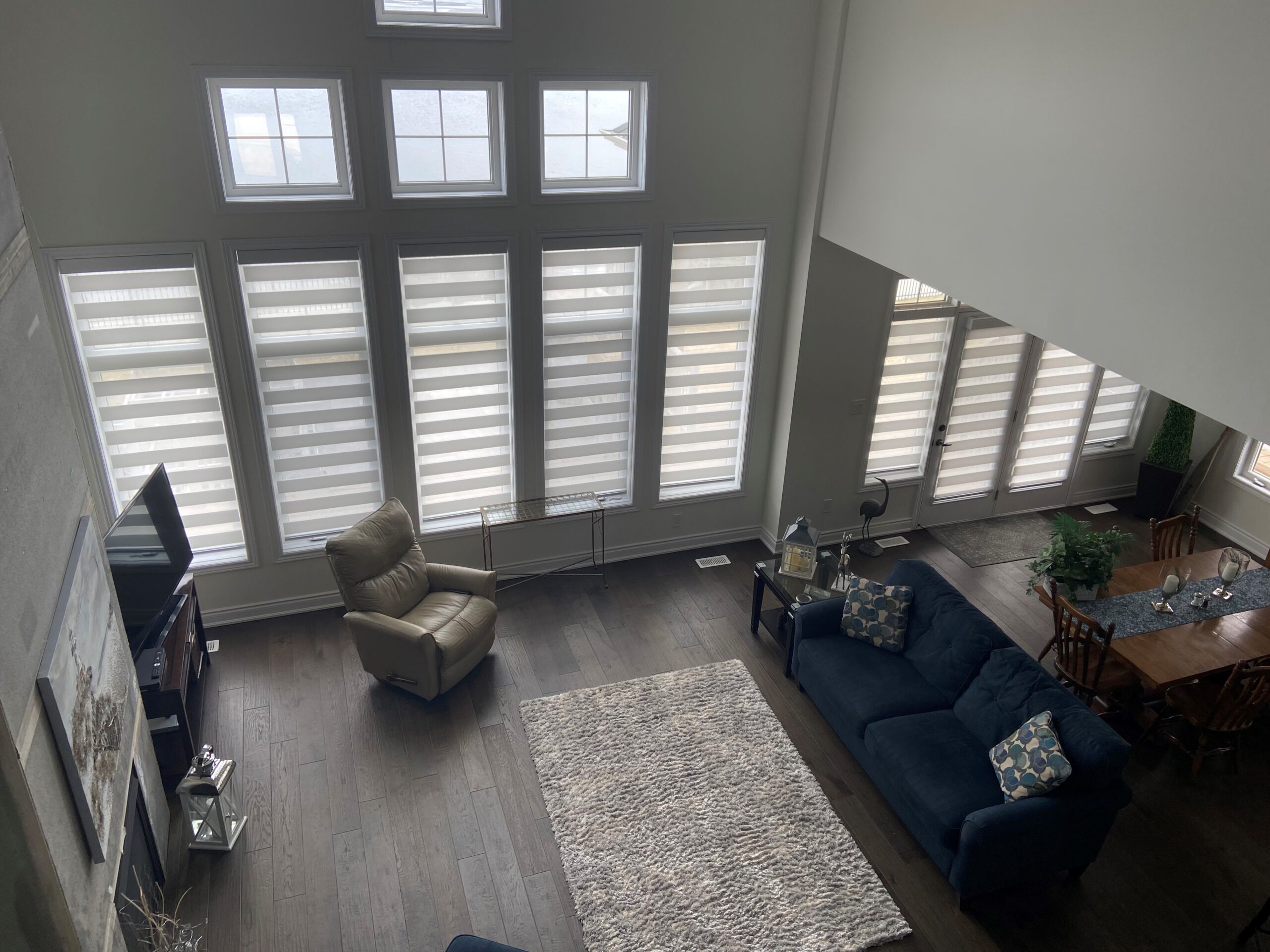 Modern and stylish window treatment that combines two layers of fabric to provide versatile light control and privacy. The unique design features alternating sheer and solid fabric stripes, allowing you to easily adjust the amount of light that enters a room.